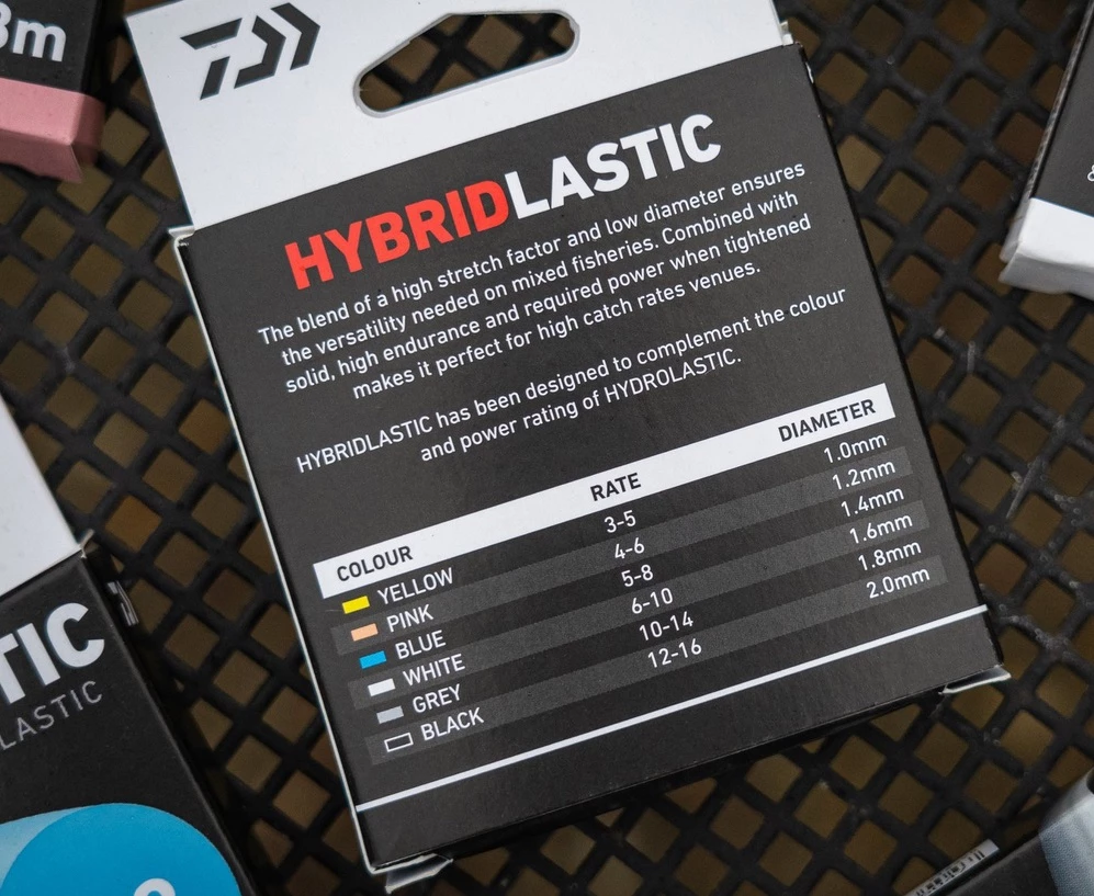 A solid core high endurance elastic with a terrific stretch factor. Ideal for use with puller kits and lower diameter top kits alike. This versatile option is a perfect choice for mixed fisheries and commercials with a colouring system that matches the ratings of their best selling hydrolastic.