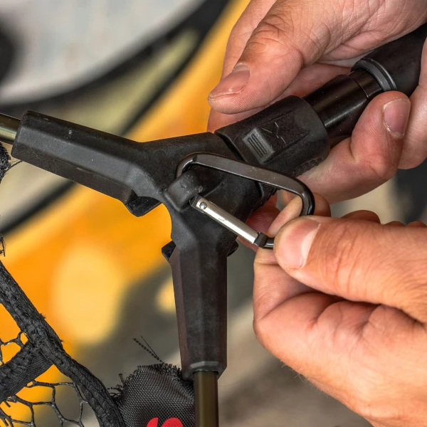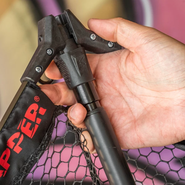 A folding net head you can easily release and deploy with just one hand! Featuring a spring loaded mechanism that unfolds and operates with the simple press of a button. The main block also has an attachment you can use to clip on a quick release magnet, or carabiner. The mesh itself is fish friendly and rubberised, so it’s much easier to release any loose or flying hooks. With a depth of 50cm, there’s enough room to tuck your catch into the margins while you prepare your weighting gear.