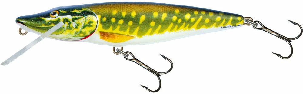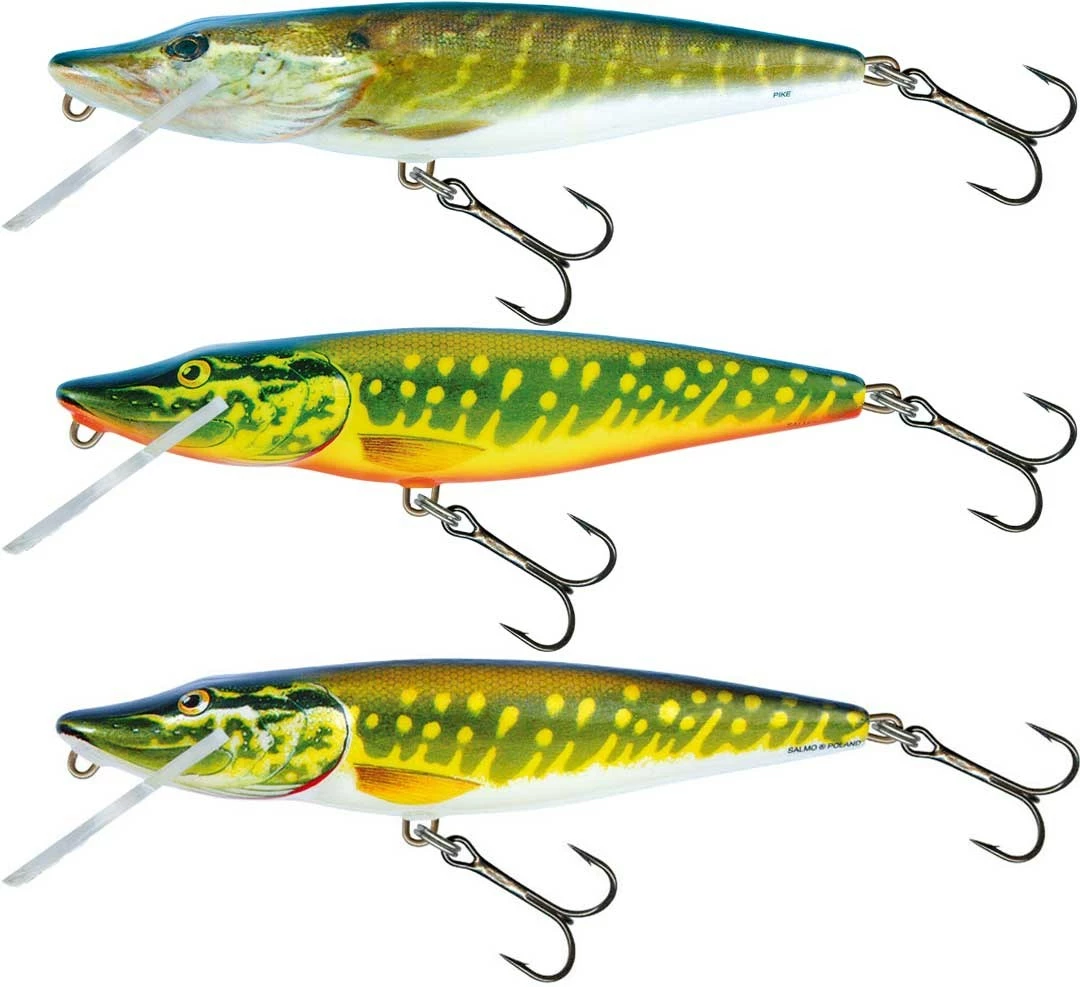 - 9cm – Pike (Green/Yellow body with White Belly)