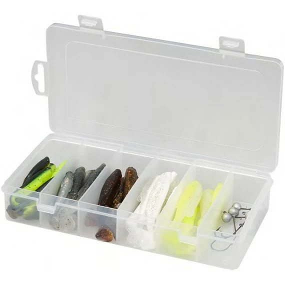 A grab and go selection of Savage’s popular Fat Minnow T-Tail lures complete with matching jig heads in various sizes. With 30 individual lures in 7.5cm, 9cm and 10.5cm, you get ten of each giving you plenty of options to switch between. The jig heads supplied come in three hook sizes with two weighting choices per hook size. All of this comes supplied in its own clip lock tackle box.